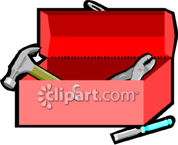 Construction tools clipart black and white: Red Toolbox Full of Tools