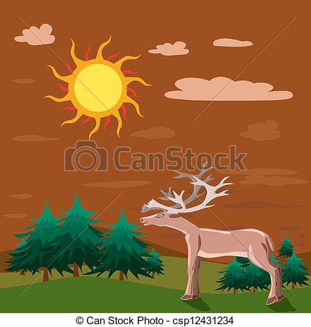 Evening clipart: Reindeer with evening time.