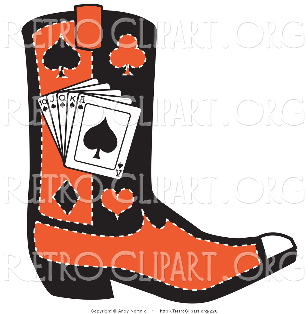 Cowboy boots clipart black and white: Retro Clipart of a Black and