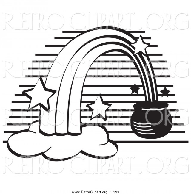 Rainbow pot of gold coloring page: Retro Clipart Of A Coloring