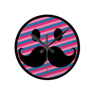 Pink smiley face with mustache: Retro Pink Striped Mustache