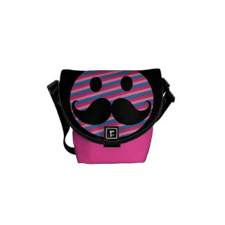 Pink smiley face with mustache: Retro Pink Striped Mustache