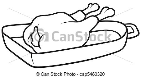 Chicken clipart black and white: Roast Chicken - Black and