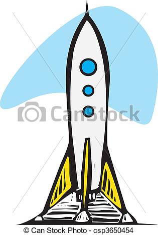 Launch clipart: rocket on a launch pad.