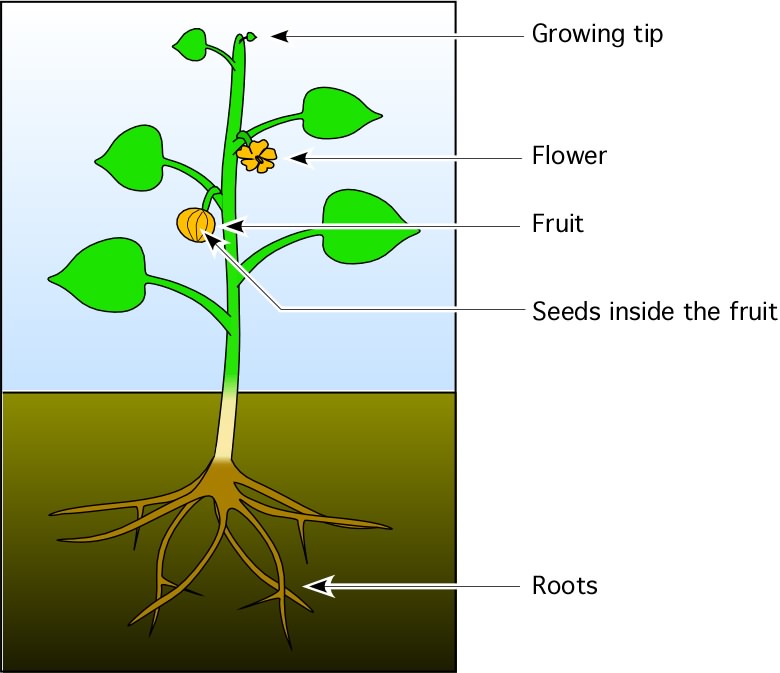 Flower plant with roots: roots tip flower fruit seeds