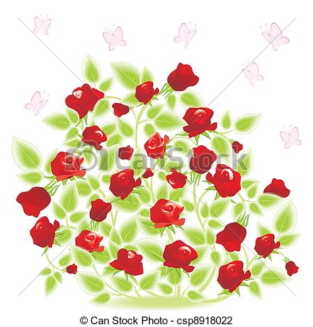 Bush clipart: rose bush with butterfly - red