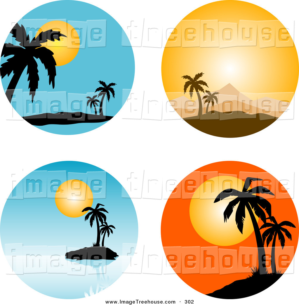 Sunset clipart: Royalty free clip art of a set