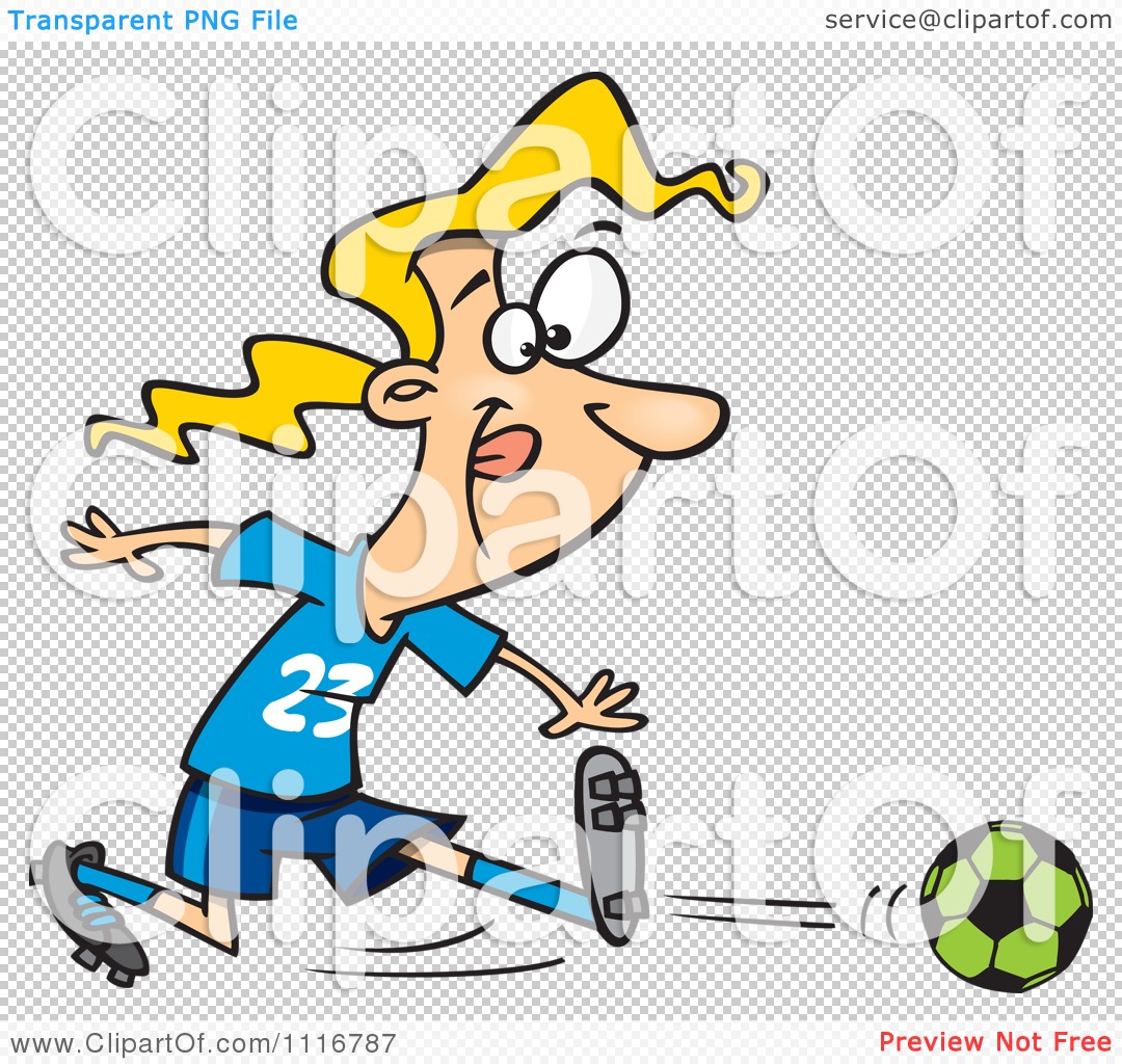 Girl kicking soccer ball clip art: Royalty free clipart
