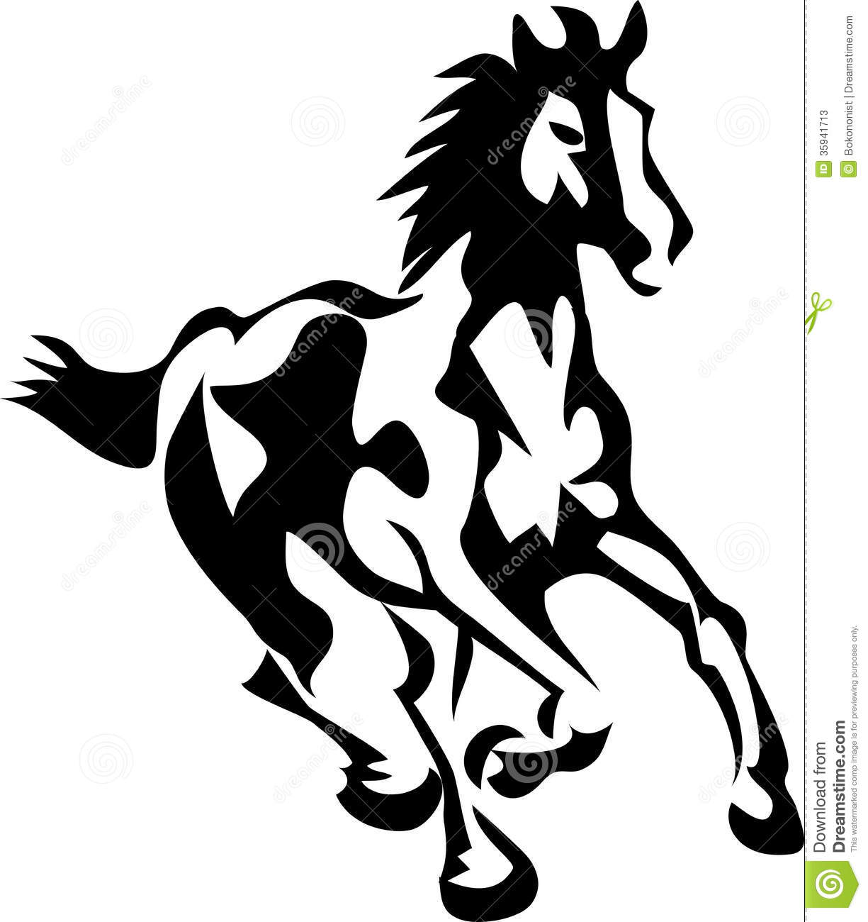 Running horse clipart black and white: Running paint horse - stylized
