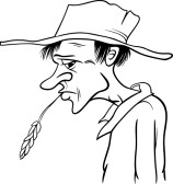 Sad farmer cartoon: sad and pensive : Black and