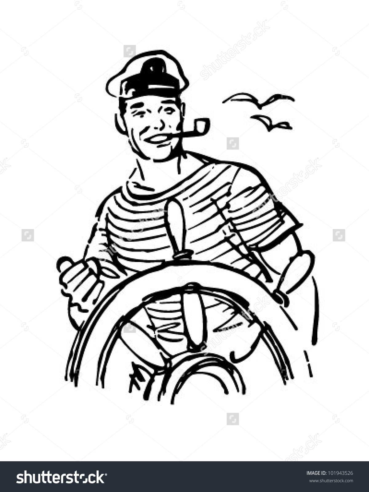 Sailor clipart: Sailor At The Helm - Retro