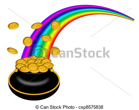 Rainbow with pot of gold clipart black and white: Saint Patricks Day Pot of Gold