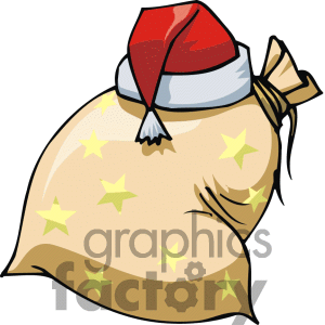 Gift bag clipart: Santa's gift bag with Stars