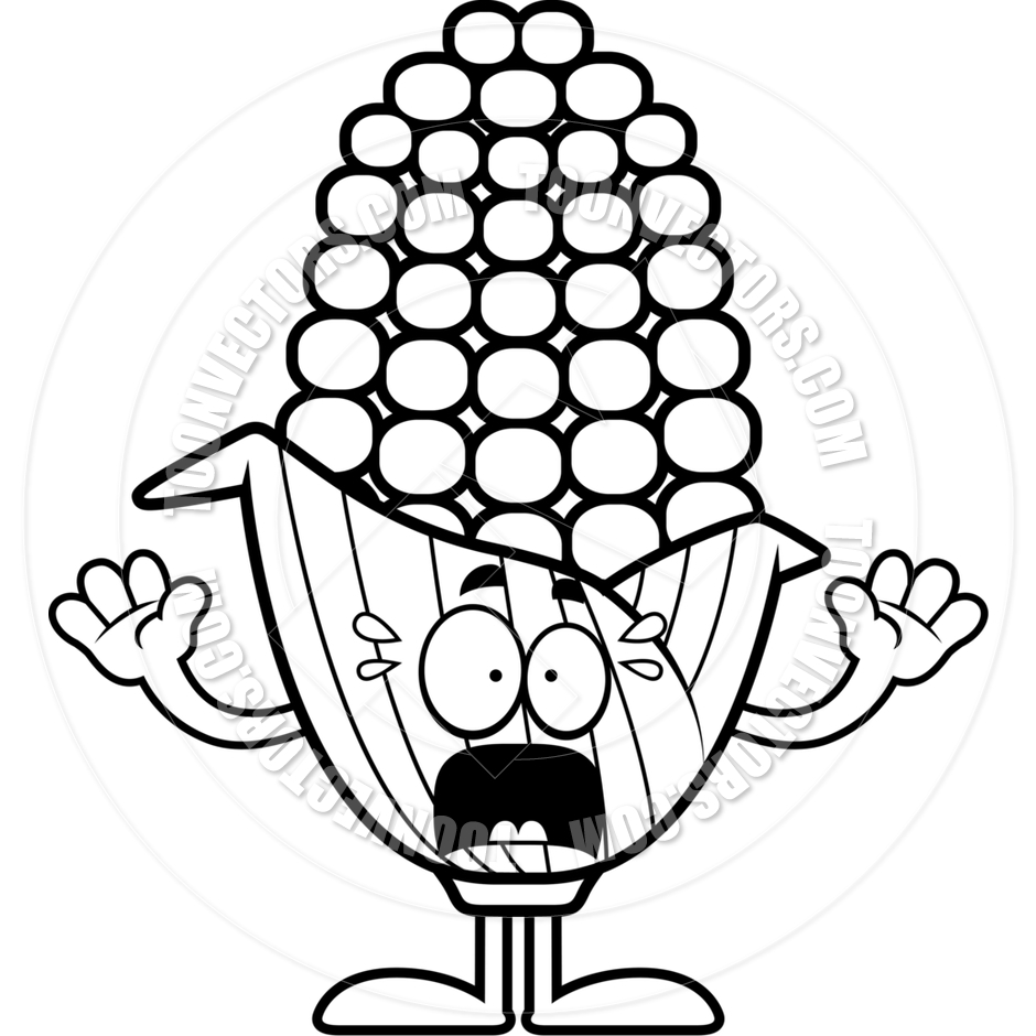 Corn clipart black and white: Scared Cartoon Corn (Black and