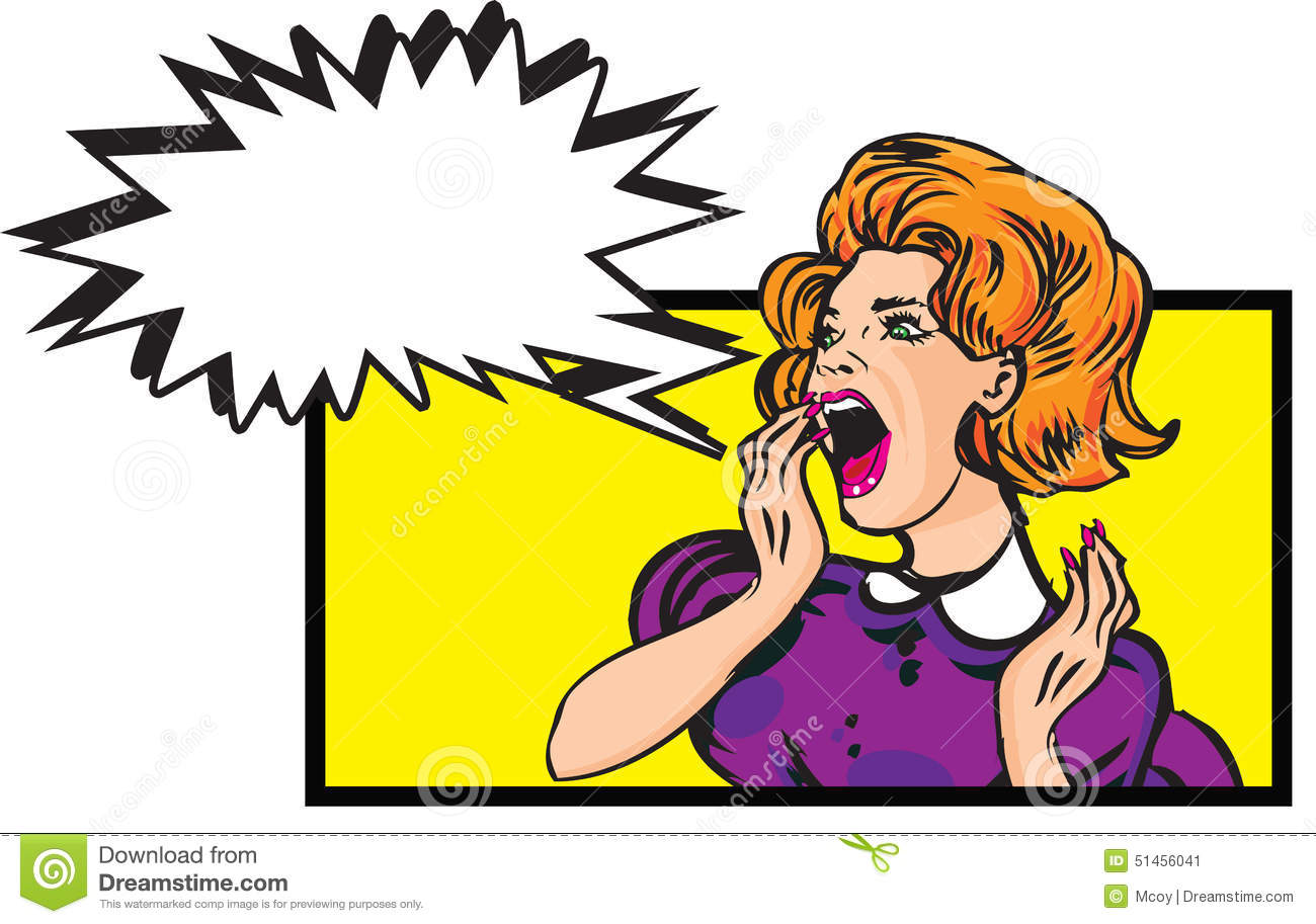 Speech clipart: Scared woman - retro clip art