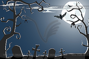 Cemetery clipart: Scary night cemetery - color