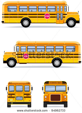 School bus side view flat front: school bus in vector set 32