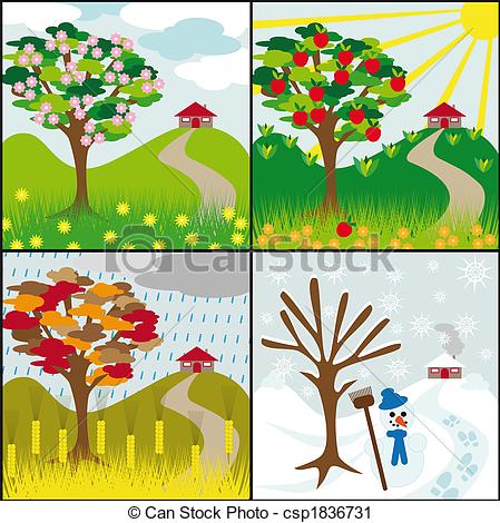 Season clipart: seasons on a hill clipart