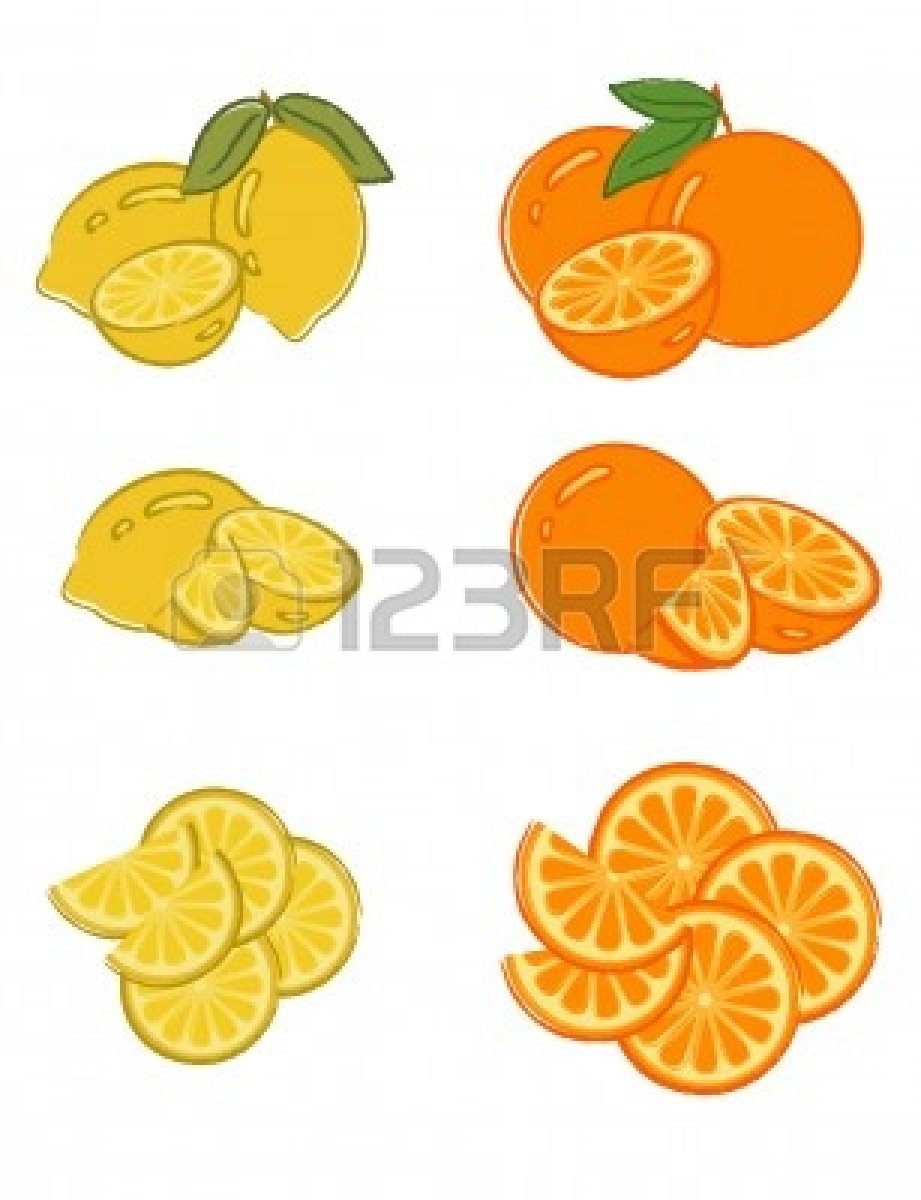 Orange slice vector: Set of lemon and orange slices