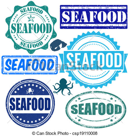 Seafood clipart: Set of seafood stamps -