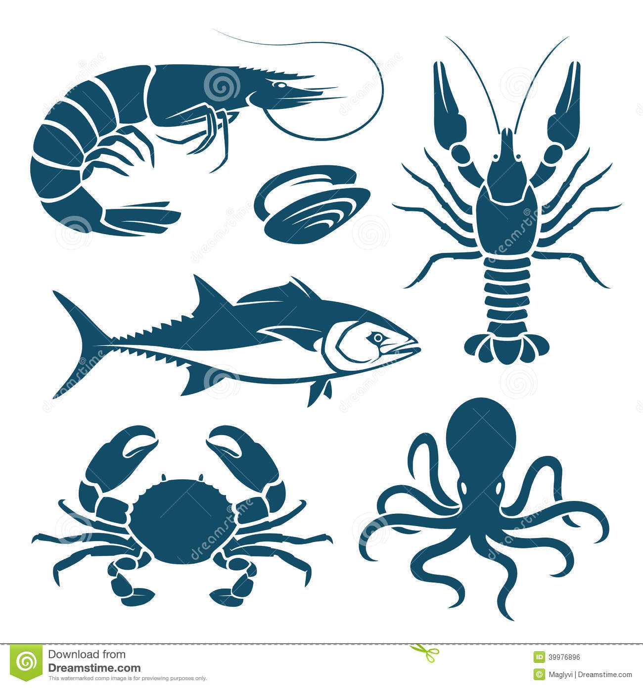 Seafood clipart: Set of seafood watercolor.