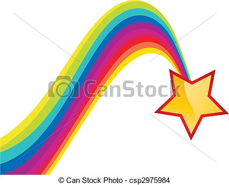 Rainbow stars clipart: Shiny star and rainbow trail -