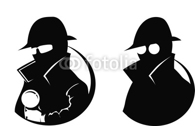 Magnifying glass detective: Silhouette of 2 detectives,