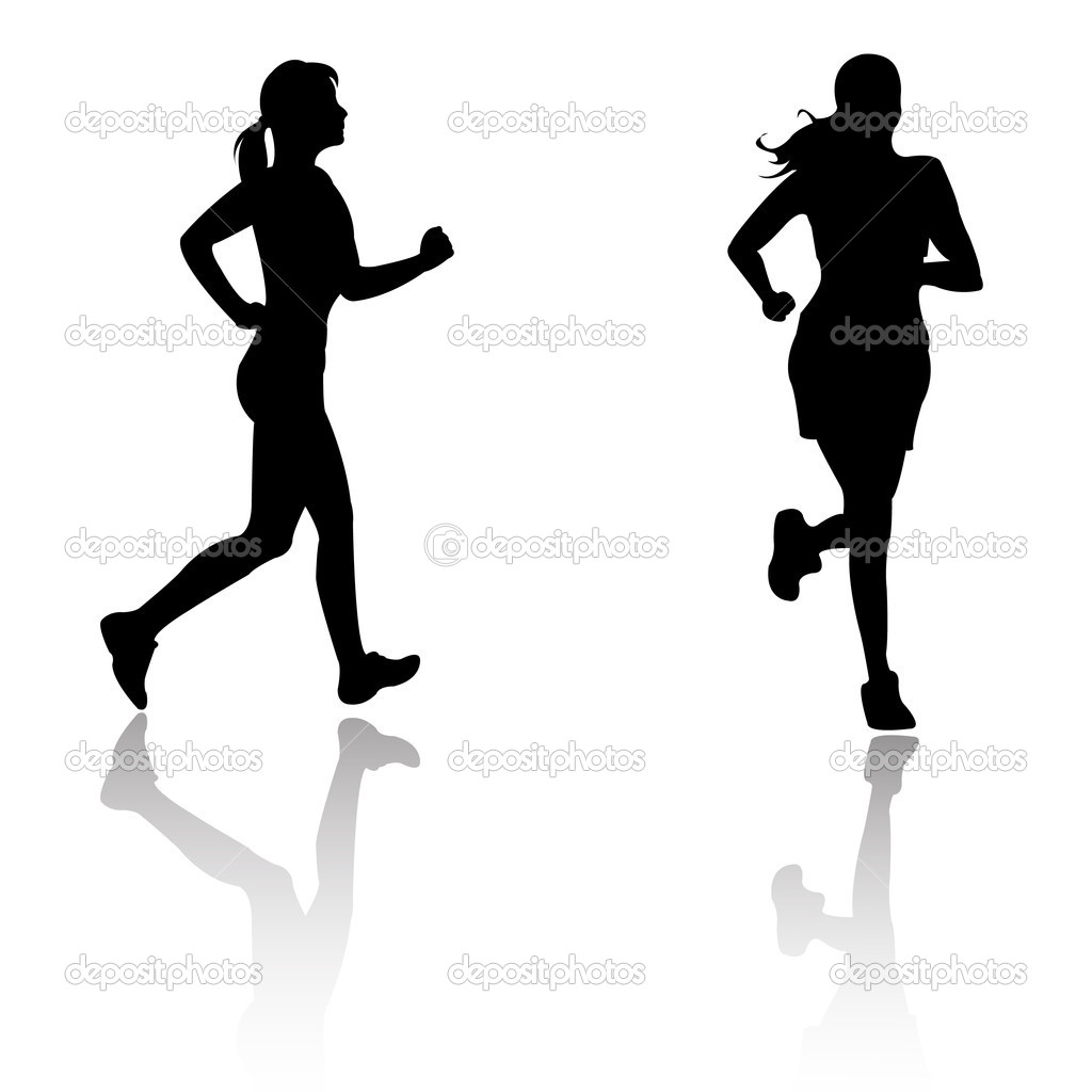 Girl running silhouette: Silhouette run woman - Stock