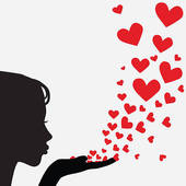 Leaves blowing in the wind clipart: Silhouette woman blowing heart