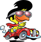 Race car driver clipart: smart chicken driving a sports