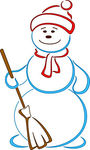 Snowball clipart: Snowball in a cap with a broom
