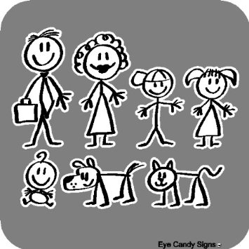 Stick family car stickers: Stick People Family Car Decals