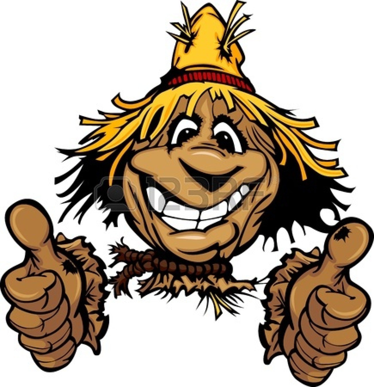 Cartoon hut on fire: straw : Cartoon Scarecrow with