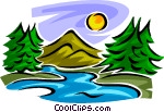 Stream clipart: Stream and mountains