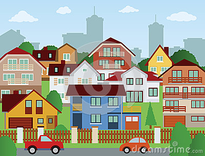 Suburb clipart: Suburb Scene With Houses And