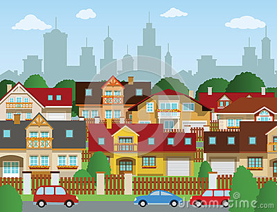 Suburb clipart: Suburb Scene With Houses And