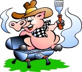 Family bbq retro: summer bbq : Pig sitting on a