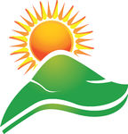 Sun rays background: Sun with swoosh rays and hills