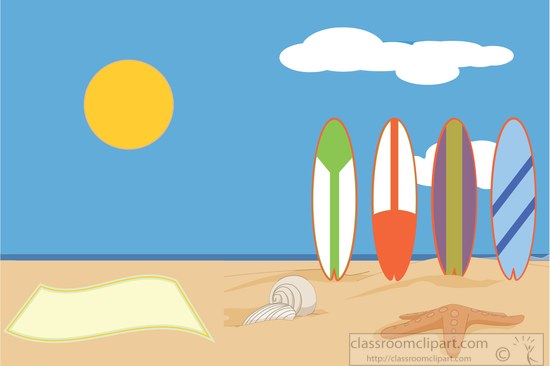 Beach clipart: surfboard at beach clipart