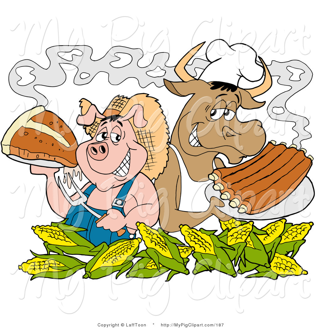 Bbq ribs clipart black and white: Swine Clipart of a Pink Chef