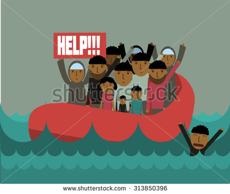 Immigration clipart: Syrian refugees on boat.