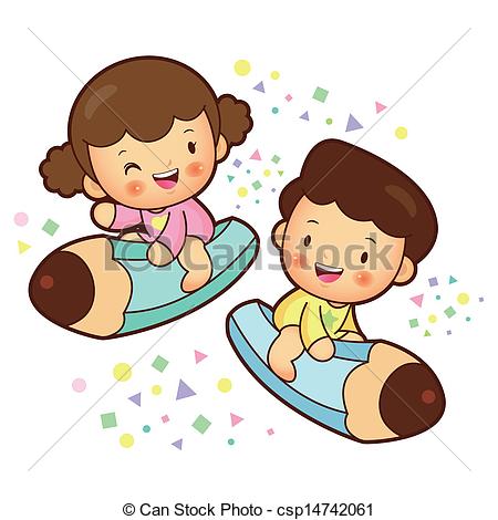 Boy and girl writing clipart: The Boy and girl is sitting on