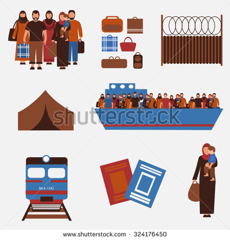 Refugee clipart: The group of refugees.