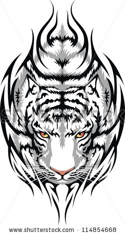Tiger eyes tattoo: The head of a white tiger is