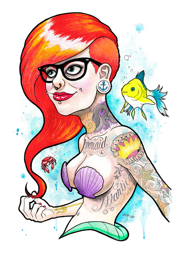 Vintage mermaid art: The Little Mermaid - Ariel