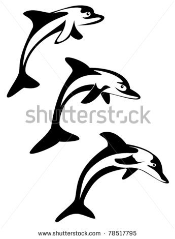Jumping dolphin outline: Three jumping dolphins - stock