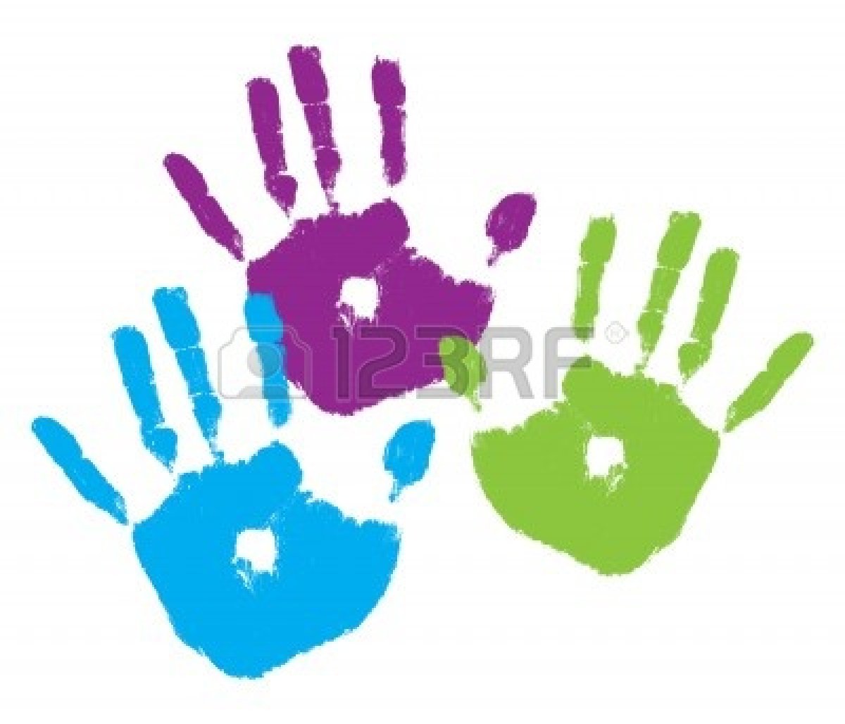 Kids handprint clipart: Three kids' handprints in
