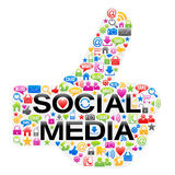 Falling snowflakes background: Thumbs Up Sign Of Social Media
