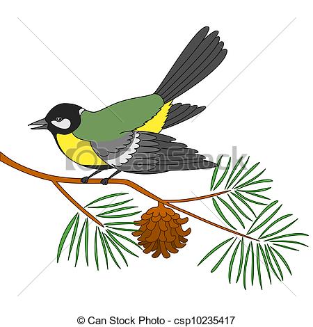 Clip art pine cone: Titmouse on a pine branch -