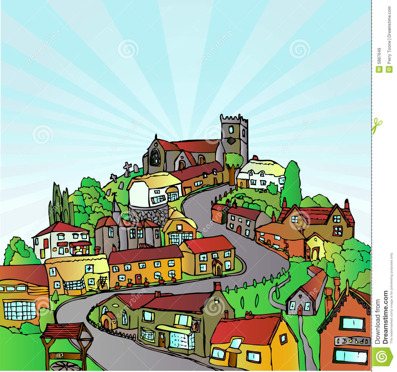 Town clipart: Town on the hill